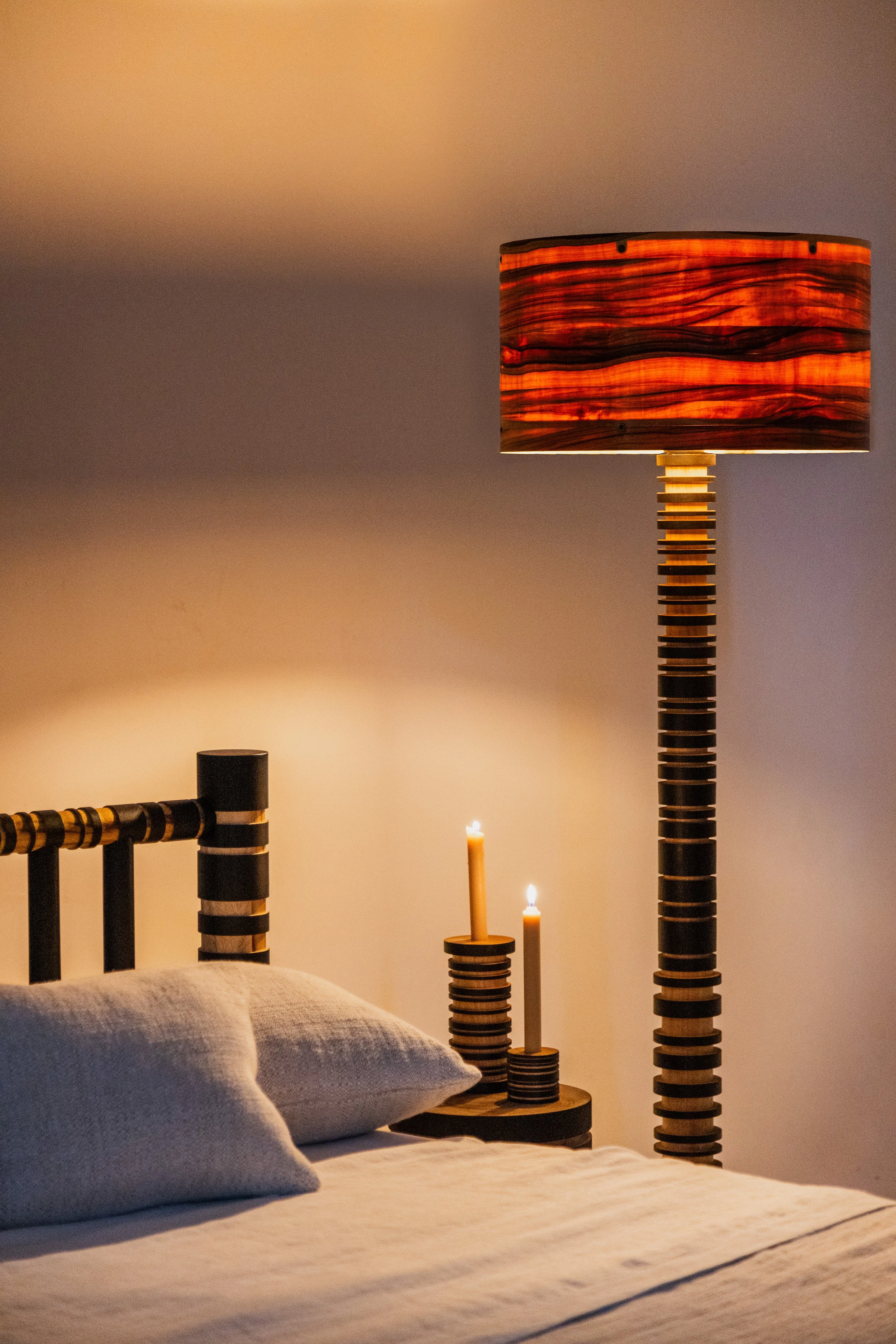With a keen eye for detail and a deep appreciation for the natural imperfection of reclaimed materials, each Turning (Camphor) Table or Floor Lamp is the result of designer, Marlo Lyda’s intuitive stacking of uniquely striped modules. Sourced from timber mills in the Northern Rivers Region of NSW or repurposed remnants from other pieces in the 'Turning' Collection, each module is designed to accommodate a variety of sized off-cuts, resulting in a slight variation in height or surface pattination.